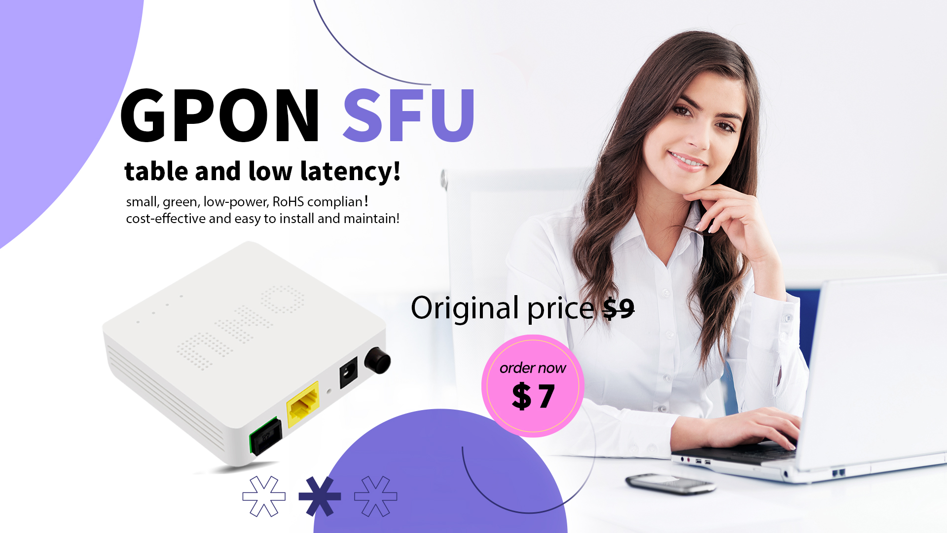 XG-PON ONUs - Support up to 10 Gbps downstream and 2.5 Gbps upstream in XG-PON networks. Provide high bandwidth for gigabit internet and HD video services.